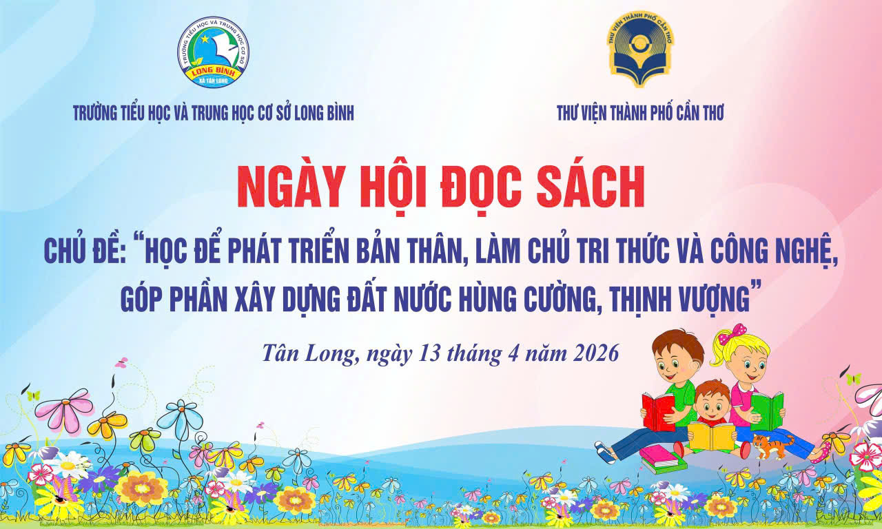 Ngày 13/4/2026, trường TH&THCS Long Bình kết hợp với Thư thành phố Cần thơ trong giờ chào cờ đầu tuần 30, Trường đã tổ chức hoạt động "Ngày hội đọc Sách" với chủ đề "Học để phát triển bản thân làm chủ tri thức và công nghệ, góp phần xây dựng đất nước hùng cường, thịnh vượng."